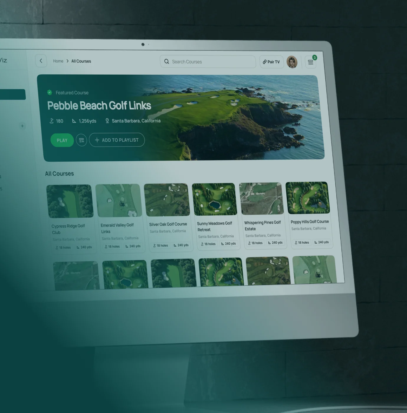 Browse our extensive library of premium golf courses. Select your favorites or create custom playlists to showcase.